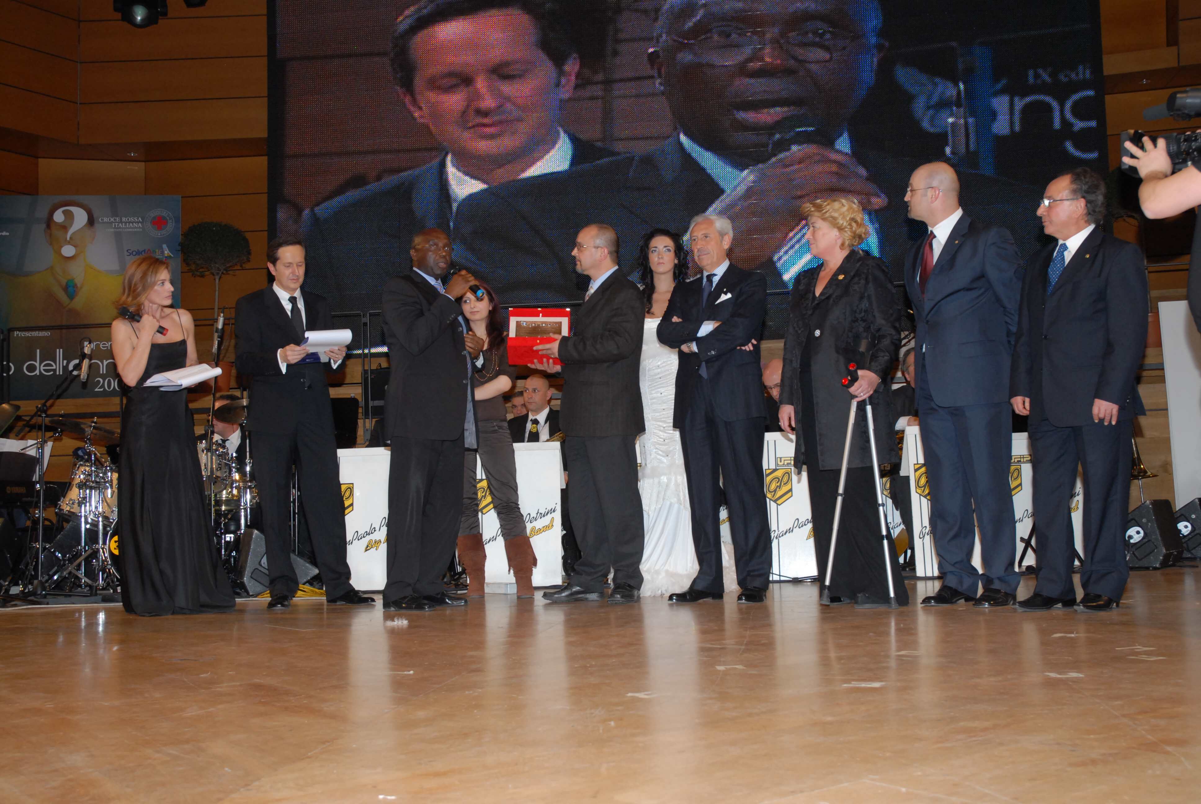 For intensive and worthy twenty years activity for supporting the children and international projects. The award is made by Stefano Festa and Alesandro Marone. The base is in bronze with letters of silver. Organizer is the Italian Red Cross and ethic center “A coin for piece”.