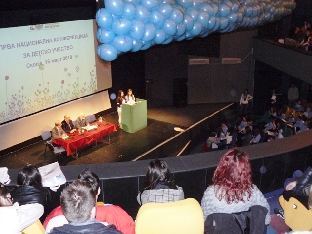 Првата национална конференција за детско учество е прва од ваков вид во Македонија и е настан на кој децата го претставија процесот на подготовка на нивниот Алтернативен извештај, ги презентираа податоците од истражувањето кое го спроведоа за потребите на извештајот, главните заклучоци и препораки за подобрување на состојбата со правата на децата во Македонија, како и презентирањето на извештајот на посебна сесија со Комитетот за правата на децата во Женева. Конференцијата беше организирана и водена од самите деца, што претставува директна примена на детското учество во практика.