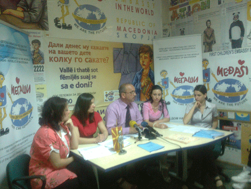 The Macedonian National Coalition of Nongovernmental Organizations for children’s rights (informal coalition), coordinated by the First Children’s Embassy in the world Megjashi, on Thursday, 07 June 2012, at 10:30, at the offices of the First Children’s Embassy (str. Kosta Novakovik 22a, Skopje) organized a press conference for Presentation of the Report for the situation of the children’s rights in Republic of Macedonia for the period from June 2010 to December 2011, prepared by a group of Nongovernmental Organizations.