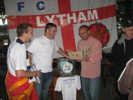 НАВИВАЧИТЕ НА BOLTON ДОНИРАА ЗА ДЕЦАТА ВО МАКЕДОНИЈАНа 20 септември се оддржа средба помеѓу претставници на Детската амбасада и навивачите на Bolton Wanderers, предводени од Lee Williams кои пристигнаа во Македонија за да го поддржат нивниот клуб во натпреварот со Работнички Кометал. Парите собрани од добротворната акција организирана од навивачите на Bolton, беа донирани на Првата детска амбасада во светот-Меѓаши за потребите на Дневниот центар за деца на улица.