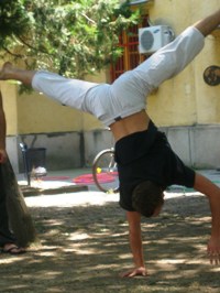 Неговата желба да го презентира циркусот во родната земја Македонија, по повеќемесечниот труд, се вроди со плод. Тој со уште четворица свои колеги, млади циркузанти од разни земји во Европа, на 28 Јули ги започна своите циркуски работилници, кои се одвиваа во дворот на Детската амбасада.
