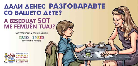 The Embassy “Megashi” through 42 billboards in the City of Skopje and 18 billboards in the other towns in Macedonia shall convey the message that we should pay more attention and devote more time to the children. Children need talk, they need to be asked how do they feel, how did they do at school, how did they do with their friends, how to manage all the educational programs and everything in the sphere of their needs and interests.