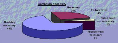 Have you noticed the campaign? Do you consider the campaign efficient? Do you consider the campaign necessary? Results show that the campaign was well received and extremely appreciated by the Macedonians. Almost 70% of the respondents were aware of the campaign. Most of them thought that goals of the campaign were met (78%) and that the campaign was a necessary effort to tackle violence against children (95%).