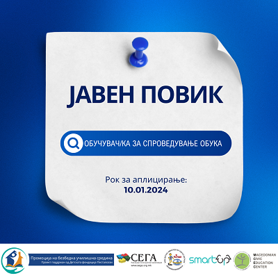 ПОВИК ЗА АНГАЖМАН НА ОБУЧУВАЧ/КА ЗА СПРОВЕДУВАЊЕ ОБУКА