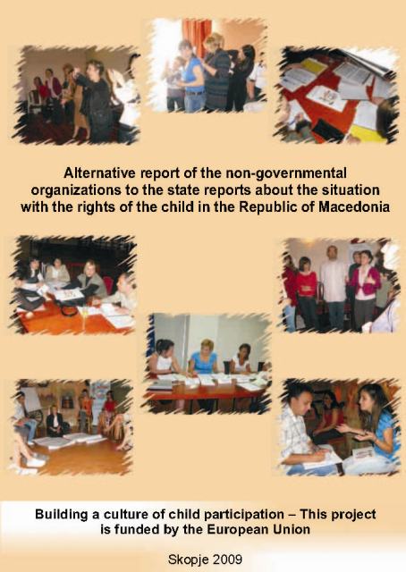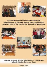 The Alternative Reports of NGOs on the occasion of the Second Periodical State Report to the Convention on the Rights of the Child[1] and the initial reports on the Optional Protocols, are prepared by the National Alliance for Children's Rights - Republic of Macedonia - NACR (non-formal Alliance established in 1997) as part of a project activity of the First Children's Embassy in the World MEGJASHI. For the needs to prepare the report in 2009, this NACR was renewed and extended with new member organizations and two coalitions. 21 civil society organizations and 2 coalitions of civil society organizations took part in the process of preparation of the Alternative Reports[2].