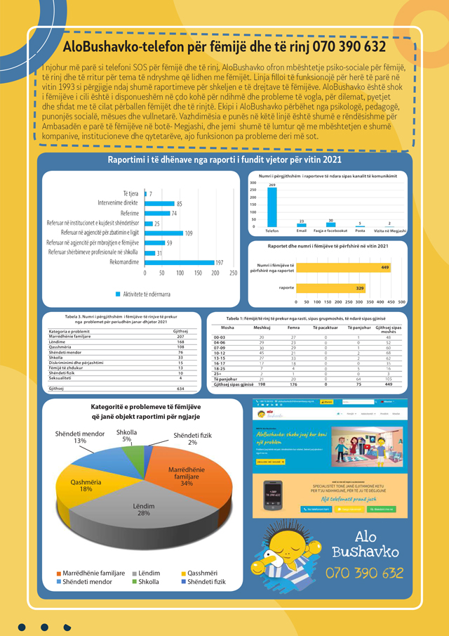 Raport gjysmë vjetor për punën e linjës telefonike SOS për fëmijë dhe të rinj – 2021