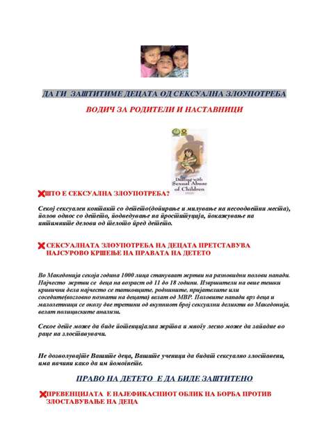 Не дозволувајте Вашите деца, Вашите ученици да бидат сексуално злоставени, има начини како да им помогнете.